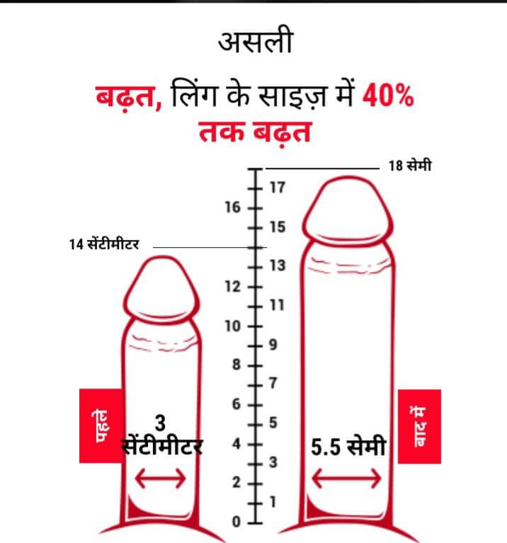 फ़र्क दिखता है लिंग जितना बड़ा हो उतना अच्छा। मैं अपनी मर्दानगी खोना नहीं चाहता था और इसलिए ऑपरेशन का रिस्क नहीं लिया। मैंने ट्राय की POWER BOOSTER क्योंकि ये ज़्यादा सुरक्षित है और इससे मुझे बढ़िया फायदा भी हुआ, मेरा साइज़ 3 सेमी बढ़ गया। मेरी बीवी को साइज़ में बढ़त तुरंत महसूस हुई।